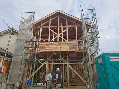 台風の影響で、上棟工事が少し伸びてしまいましたが